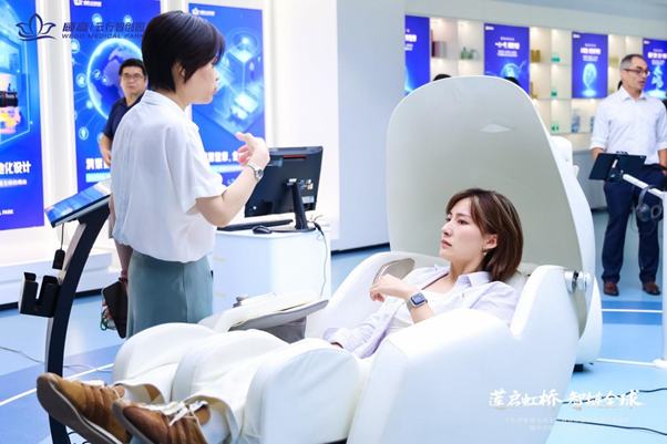 在威高云行智创园产业服务基地的展示区,惠诚健康集中呈现了 睡眠效能修复舱、疼痛调理舱、AI 无人疗愈健康系统及个人 / 团体健康疗愈方案,凭借 “智能化、场景化、个性化” 的技术优势,成为现场焦点。